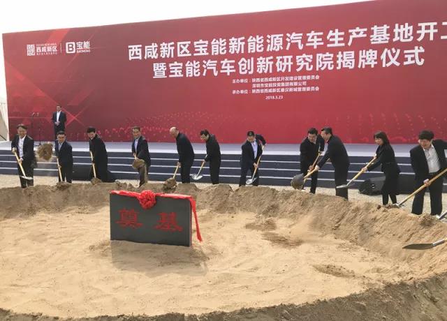 3月23日西咸新區(qū)寶能新能源汽車生產(chǎn)基地開工暨寶能汽車創(chuàng)新研究院揭牌儀式在陜西省西咸新區(qū)秦漢新城舉行。該項(xiàng)目總投資約400億元,規(guī)劃產(chǎn)能100萬輛(其中一期50萬輛)新能源汽車及配套項(xiàng)目,整車和零部件制造產(chǎn)值將超過千億元。這是寶能在新能源汽車產(chǎn)業(yè)的重大布局,也是西咸新區(qū)開工建設(shè)的千億級(jí)工業(yè)產(chǎn)業(yè)項(xiàng)目。